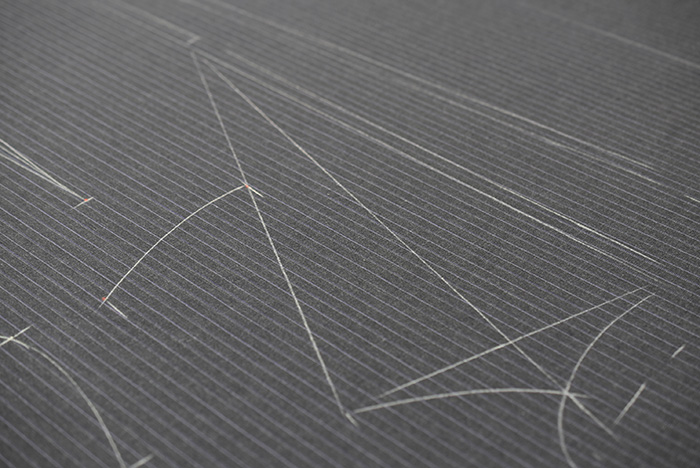 前身頃の胸ポケットに赤えんぴつで印を入れます。