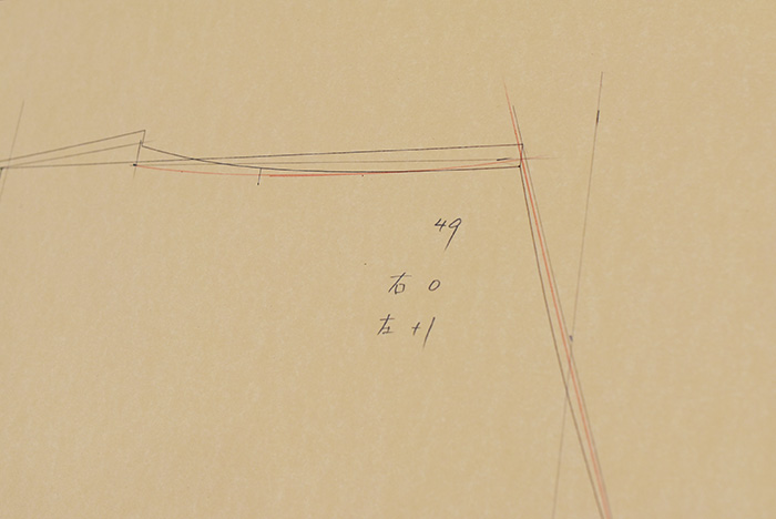 型紙の曲線調整。着心地に関わる大切なラインです