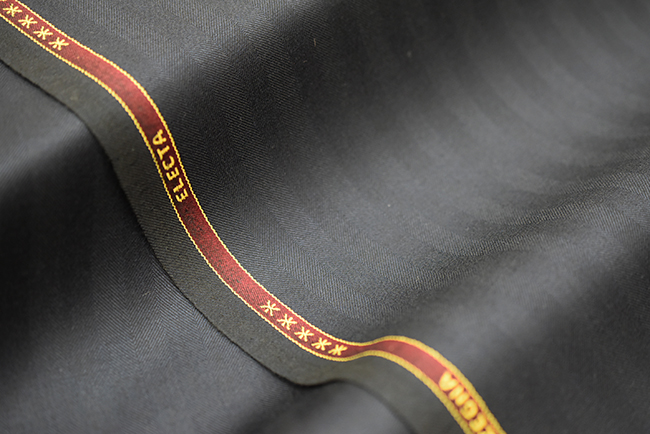 服地の表面はクリアカットで、高級感ある光沢が魅力でございます。