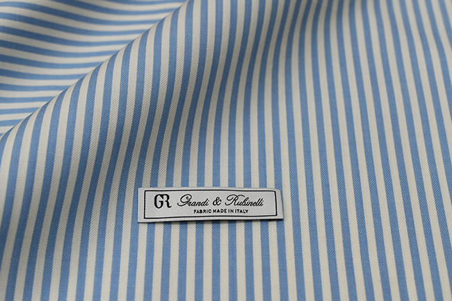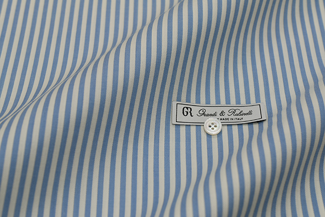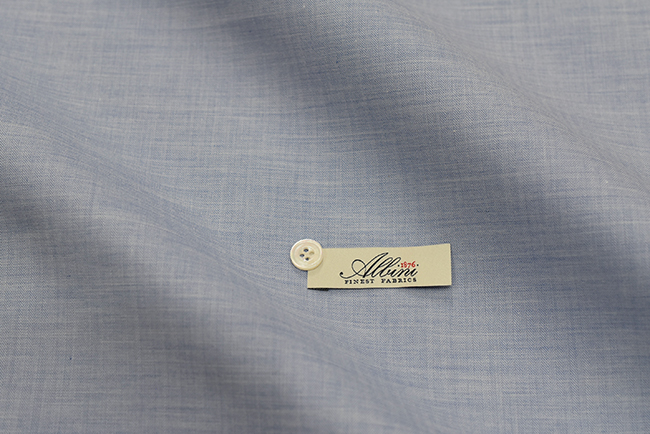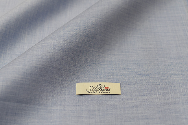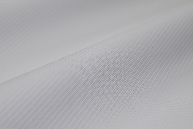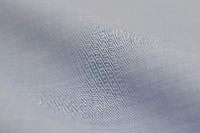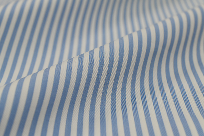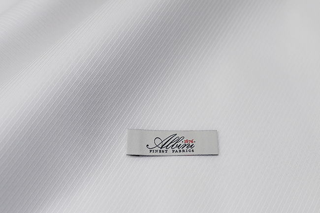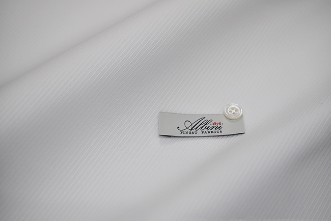 ツイル織りに仕上げられた、ピュアホワイトのワイシャツ生地でございます。